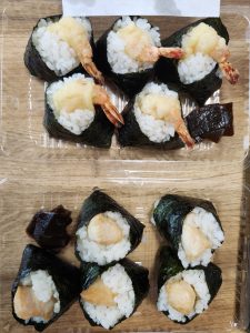 天むす、唐むすです、注文してから作るのでご飯はふっくらとしていい感じなのですが、自分も奥様も名古屋の天むすを食べてきてるので、今回購入した天むすはうす味な感じがしましたが、おいしくいただきました。